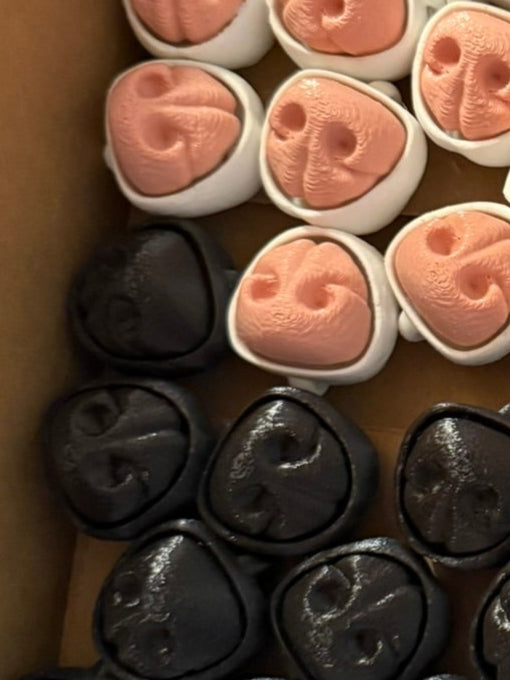 A 3D printed dog nose that clicks when you press it. Two colors are available. Black Nose or Pink Nose.